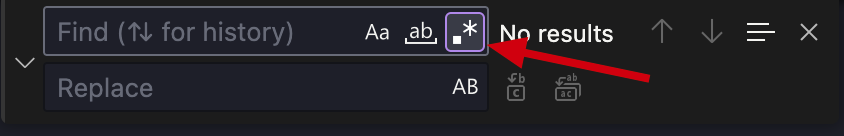 点击查找和替换面板右侧的正则表达式图标(.*按钮)。